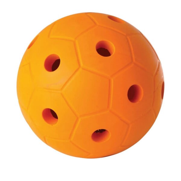 PVC ajouré. 2 clochettes à l’intérieur du ballon. Diamètre : 20 cm. Poids : 540 gr.