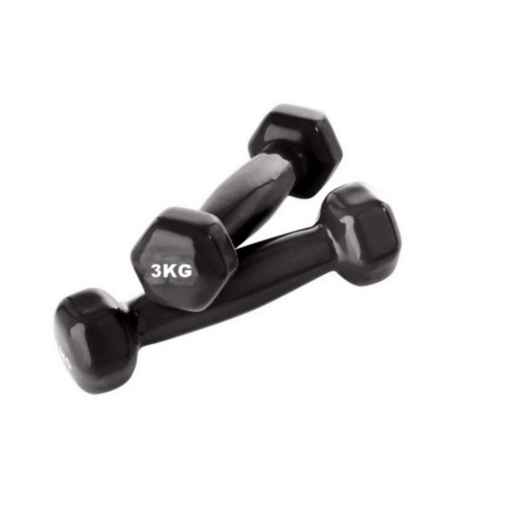 Haltère hexagonale en fonte recouverte de néoprène. Poids : 3 kg chacun. Coloris : Gris. G